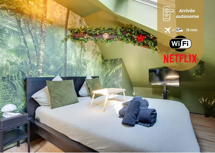 A 28 m²-es La Suite Jungle - L'Experience Immersive Vertou könnyű elérhetőséget nyújt az olyan városi nevezetességekhez, mint az egy 6 perces sétára található Cine Vaillant.